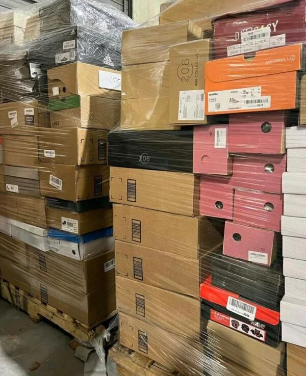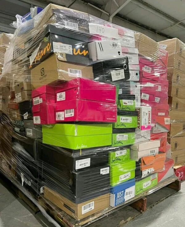 Shoe Pallets Each pallet consists of 195 pairs of mixed shoes, comprising both branded and non-branded options a pallets cost $1350. This allows you to provide your customers with a mix of recognizable favorites and budget-friendly alternatives, appealing to a broader market. Condition: Clearance, Closeouts, Returns, Shelf Pulls. Shipping Area: Worldwide